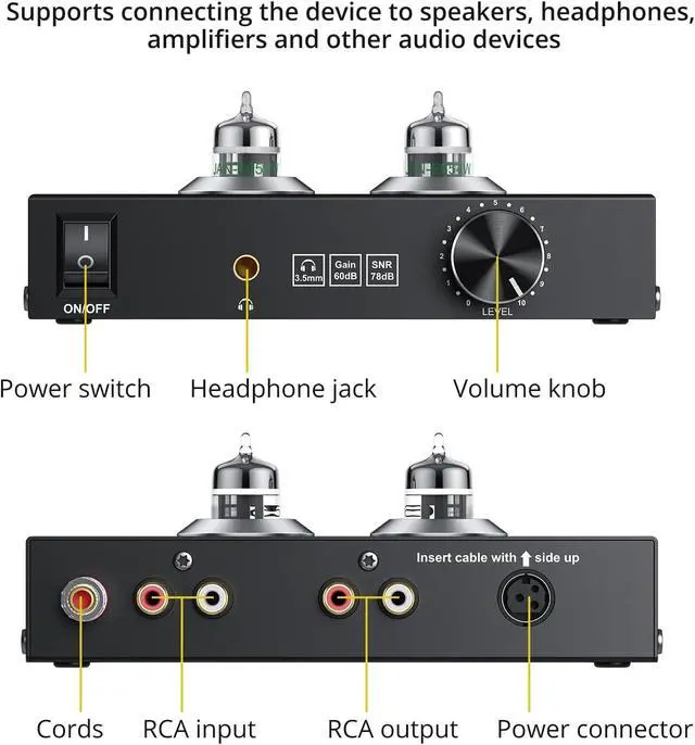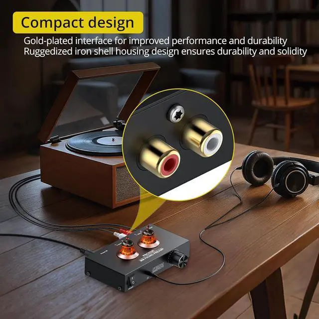 Versatile Connectivity: Equipped with gold-plated RCA inputs/outputs and a 3.5 mm headphone jack, it offers flexible connections to speakers, headphones, and amplifiers