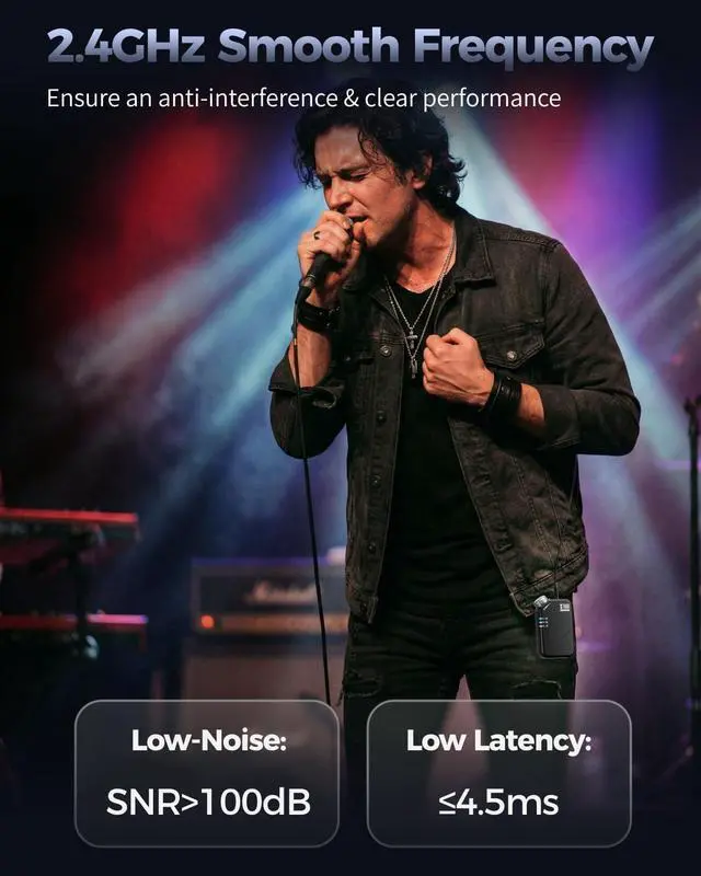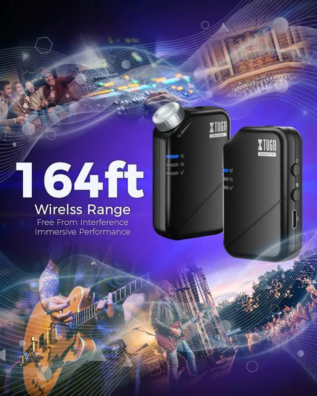 Expanded 164Ft (50m) Wireless Range: Break free with a reliable 50-meter operating range between transmitter and receiver. This wireless in ear monitoring system covers nearly twice the distance of typical 30-meter setups, delivering unwavering signal stability on large stages, church, outdoor venues, or in remote monitoring situations.