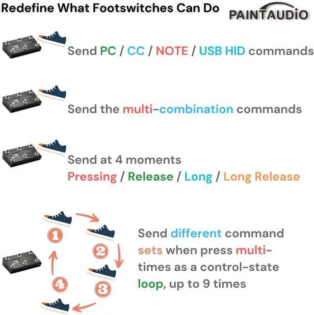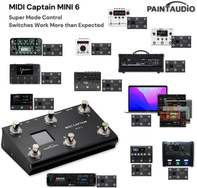 Paint Audio MIDI Captain MINI 6 Foot Controller Multi-Effects Keyboards Synthesizer USB-MIDI DAW DSP Software USB-HID Support Multi-state Switch Cycling