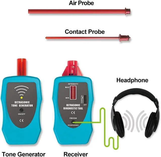 TEST ENCLOSURE SEALS & LOCATE LEAKS EFFICIENTLYIncludes a Tone Generator to check seal integrity in non-pressurized spaces (e. g., car doors/windows/roofs, enclosures). Place the generator inside (or near suspect areas for large spaces), then sweep the receiver to find leaks. Suitable for automotive QA and building diagnostics.