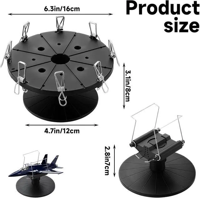 360-Degree Rotational Design: experience ease and precision with our spray work model painting stands featuring an innovative 360-degree rotation; This functional feature allows for smooth and thorough paint application from every angle; Plus, with added holes to secure paint sticks, detailing small models becomes an effortless task, making it an indispensable paint rack for model paints
