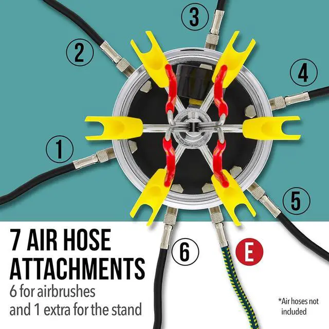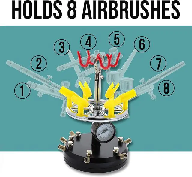 Package Contents Note: Airbrush holder stand and manifold system only; does not include airbrushes or hoses; compatible with most standard airbrush models and compressor systems