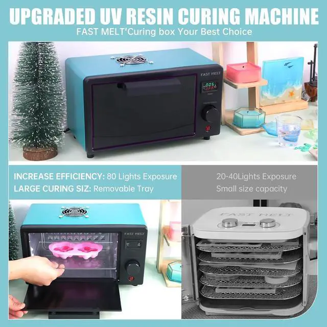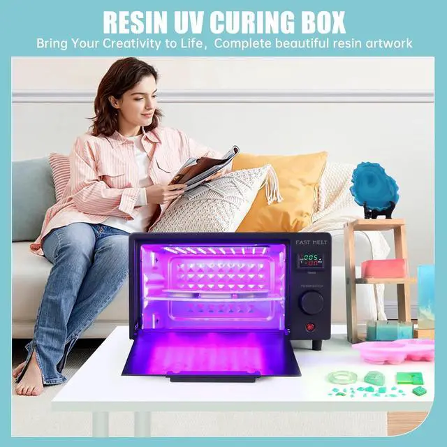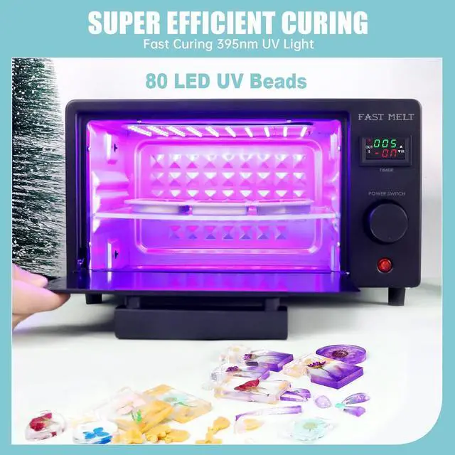 UPGRADED FUNCTION- All Round ProtectionImagination at work, Intimate assistant for resin craft. Designed with special light-filtering material, UV resin light machine ensures no ultraviolet rays escape while delivering excellent curing results. The tray allows you to cure multiple small molds simultaneously, boosting your productivity. Equipped with a transparent cover, it lets you watch the mesmerizing fusion of colors as your resin cures, adding inspiration to your creative process.