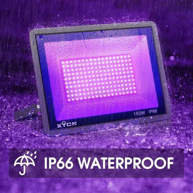 This black light flood light fixture is designed with a fin type heat sink, which means it acts like a radiator to dissipate heat. Die-cast aluminum housing, shock and erosion resistant. 50, 000+ hours lifespan for LEDs, durable and energy efficient. Low heat, low power consumption