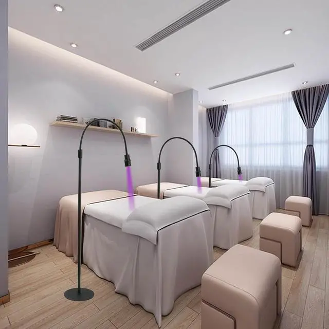 Fits perfectly in your workplace: Easy-Install Floor Light - Designed for easy installation, no tools requires, just need to rotate the poles to install. Wherever you're working or whatever your setup is like, this eye lash lamp's head-adjustable stand will offers versatility. The UV lash light has a intentionally slim design. The stable base takes up little space and integrates perfectly into your workspace without getting in your way.