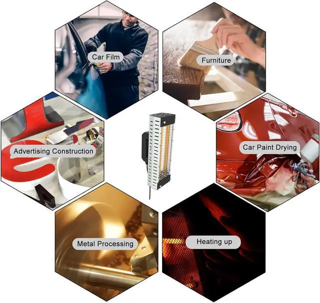 VARIOUS APPLICATIONDesigned for versatile usage, this Infrared Paint Baking Lamp finds wide applications in the auto spray paint room, local paint drying, drying putty, and car spray baking booth. It serves as an ideal paint tool for car body repair, offering efficient drying of filler, primer, and paint. With its reliable performance, it helps achieve professional results in various paint curing systems.