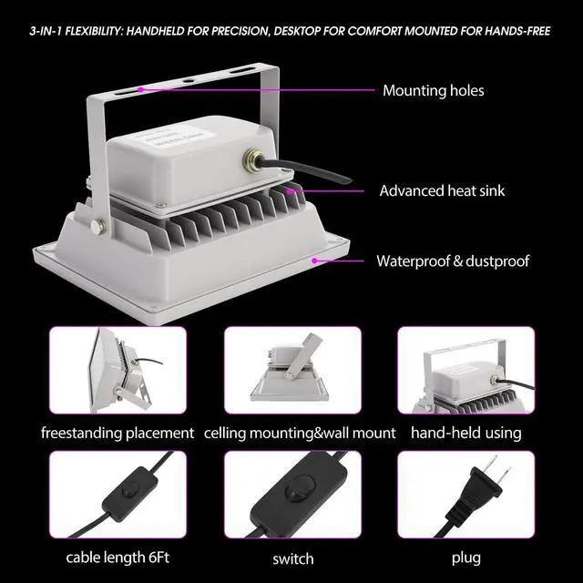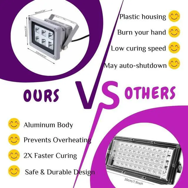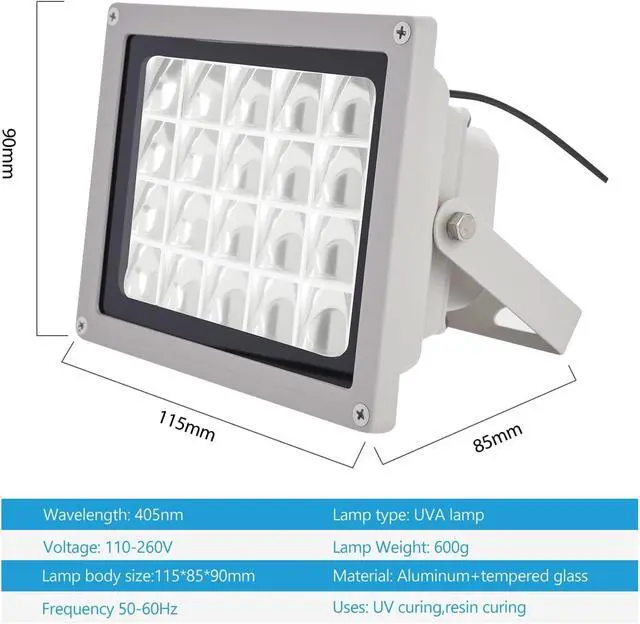 Waterproof&Dustproof uv curing light with all metal construction. Aluminum led uv light with 50000 Hours long lifespan. Aluminum material facilitate faster heat dissipation, extending the service life to 50000 hours.