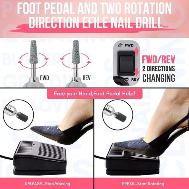 Easy for Beginners & Home Use Electric Nail Drill: We provide a tutorial video and instruction manual to assist you for use. The twist lock chuck system helps you replace grinding head easily. Suitable for both right &left- handed operators. Get a nail prep and remove nail gel quickly. Change your nail shape nail art at any time. Low cost but with salon-quality. Ideal for professional nail salon, studio and home use