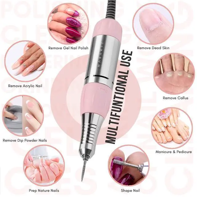 Affordable Acrylic Nail Kit with 6 pcs nail drill bits and 30 sanding bandsWhether you're a professional nail artist or an experienced hobbyist, this manicure and pedicure drill machine is perfect for both salon andat-home use.