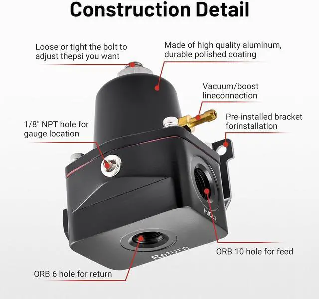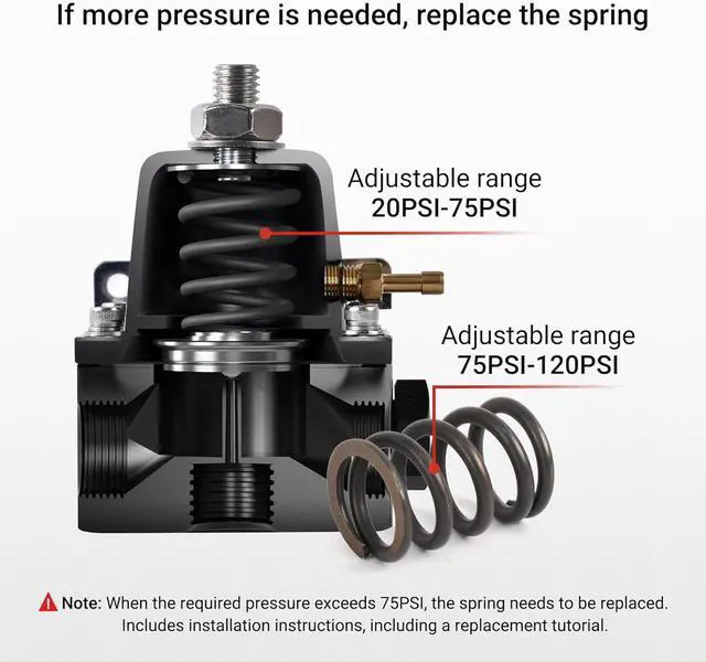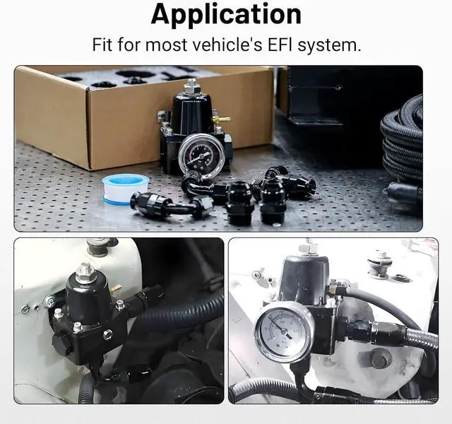 [Note]When installing fuel regulator NPT pressure gauge port, please use thread sealant tape for sealing. Professional installation is highly recommended.