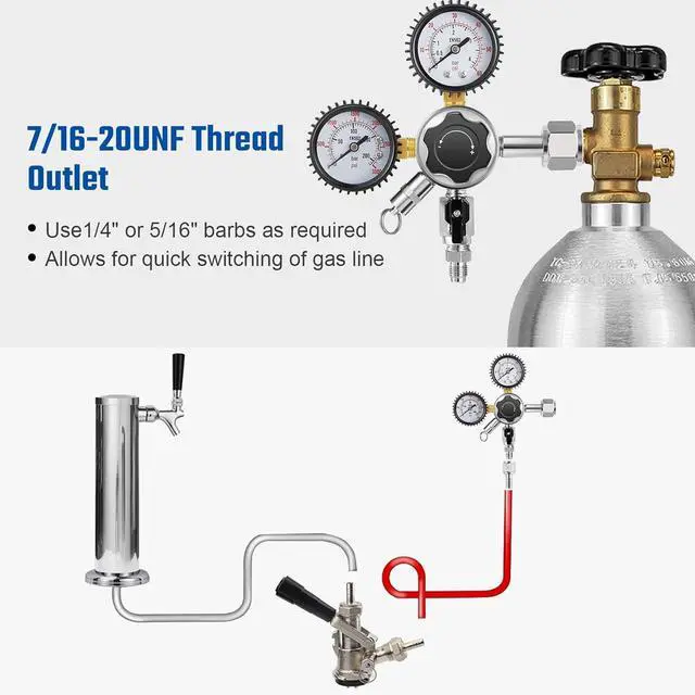 [Swivel Thread End Fitting] You can install a 1/4" barb or a 5/16" barb on the keg regulator as needed, allowing for a quick disconnect from your CO2 gas hose. Or attach your own push-on fitting to connect your EVA gas hose.
