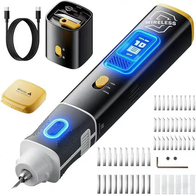 VERSATILE 50-BLADE KIT FOR ENDLESS APPLICATIONS Tackle any task with the complete accessory set. This ultrasonic engraving tool comes with 50 different ultrasonic cutting blades for detailing, engraving, and separating materials. Change ultrasonic cutting heads in seconds, adapting from DIY projects to workshop repairs instantly