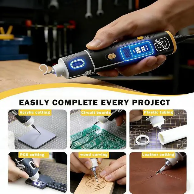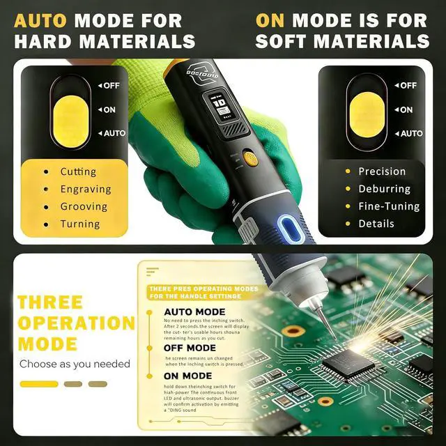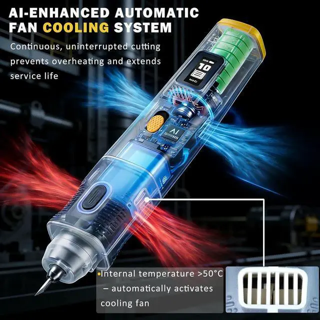 ADVANCED TURBO COOLING FOR LONG, STABLE OPERATION Work on extended projects without fear of overheating. This ultrasonic cutting tool actively manages temperature with an auto-activated fan. The clear OLED screen shows real-time stats, so you can cut, engrave, and trim resin, plastic, or carbon fiber without pausing to check the tool