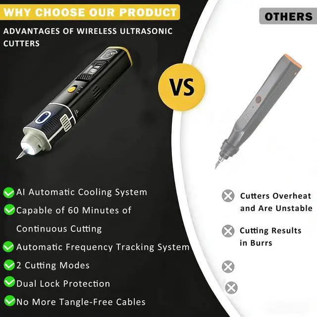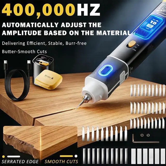 40KHZ ULTRASONIC POWER FOR CLEAN, PRECISION CUTS Achieve professional, burr-free results effortlessly. Powered by a steady 30W, this handheld ultrasonic cutting tool uses 40kHz vibration to slice smoothly without damaging materials. Its the perfect ultrasonic cutting knife for 3d printing, crafts, and modifications