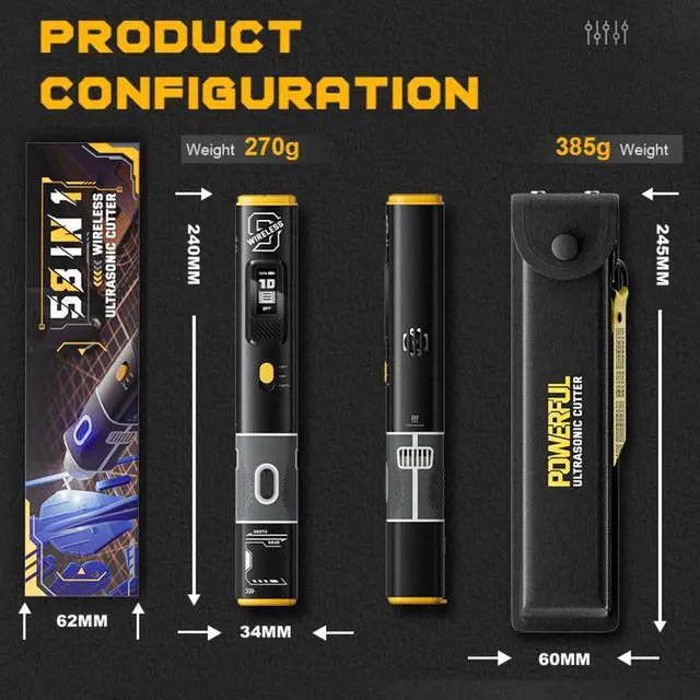 ALL-IN-ONE PORTABLE CARRY CASE FOR MOBILE WORKSHOPS Your complete toolkit goes wherever you do. The lightweight handheld ultrasonic knife cutter, all blades, USB-C cable, and tool fit neatly in the durable case. Recharge anywhere via USB, making it ideal for makers, technicians, and hobbyists who demand precision on the move