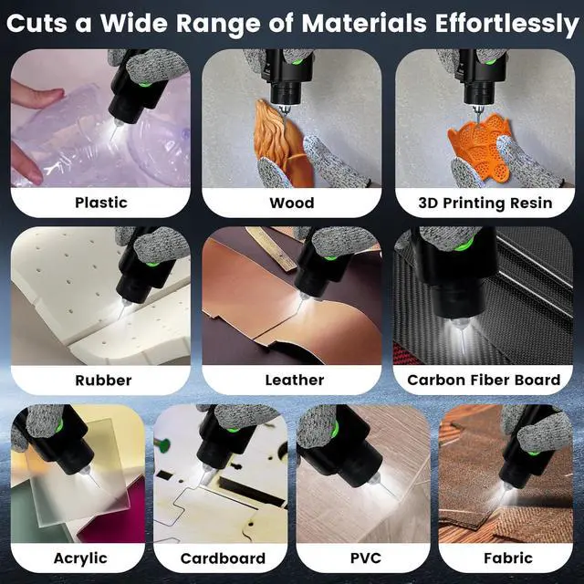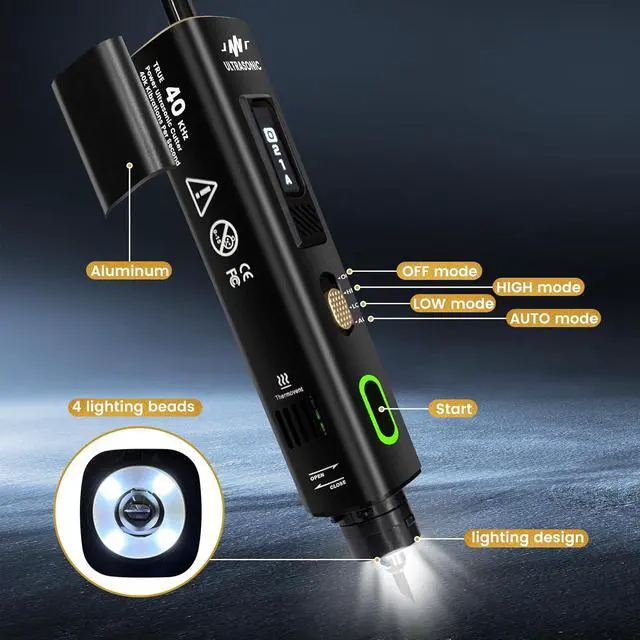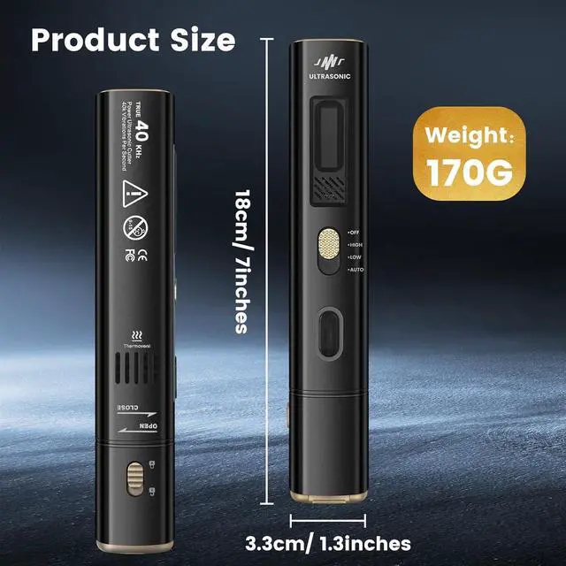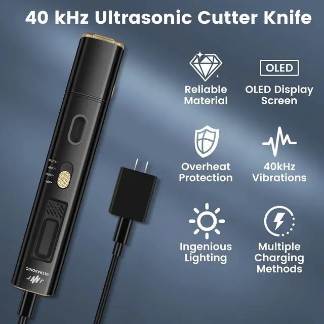 Precision: The handheld ultrasonic cutter has 4 front light beads to brighten work areas (boosts complex cut visibility). A side reminder light on the 40khz ultrasonic cutter knife alerts users to the blades status in real time.