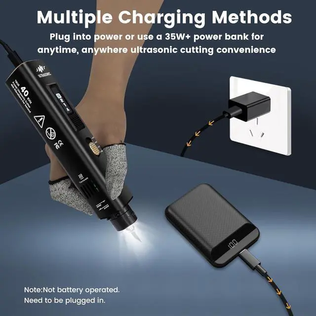 High-Power Adapter + Versatility: The ultrasonic cutter integrates cutting/grinding/polishing for all crafting needs. Its 35W adapter is more powerful/stable than most 30W ones, making this ultrasonic knife cutter reliable for daily use.
