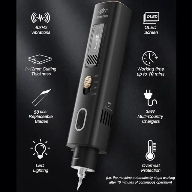 Every Time: 3D Printed Models, PVC, Leather, Wood, Plastic, Resin, Carbon Fiberone tool handles it all! Featuring 4 bright LED lights on the blade head, it illuminates your workspace for razor-sharp accuracy, even in dim conditions. Ultrasonic energy cuts like a hot knife through butterno heavy pressure needed. Get tasks done quicker and cleaner, with no chipping, fraying, or accidental scratches.
