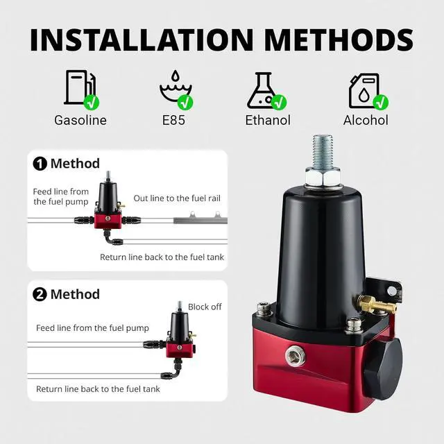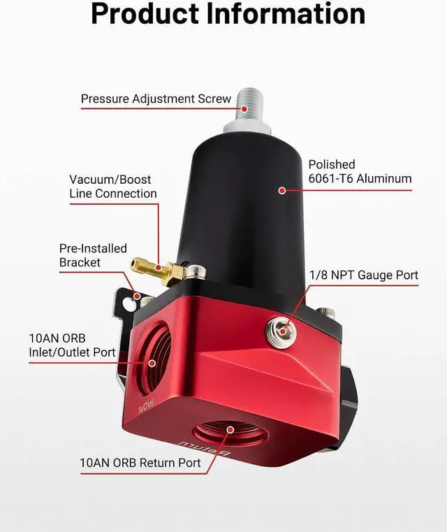 Application- The fuel pressure regulator is suitable for most vehicles' electronic fuel injection systems and can maintain the engine's fuel pressure at a specified value. (Note: when installing fuel regulator NPT pressure gauge port, please use thread sealant tape for sealing. Professional installation is highly recommended. )