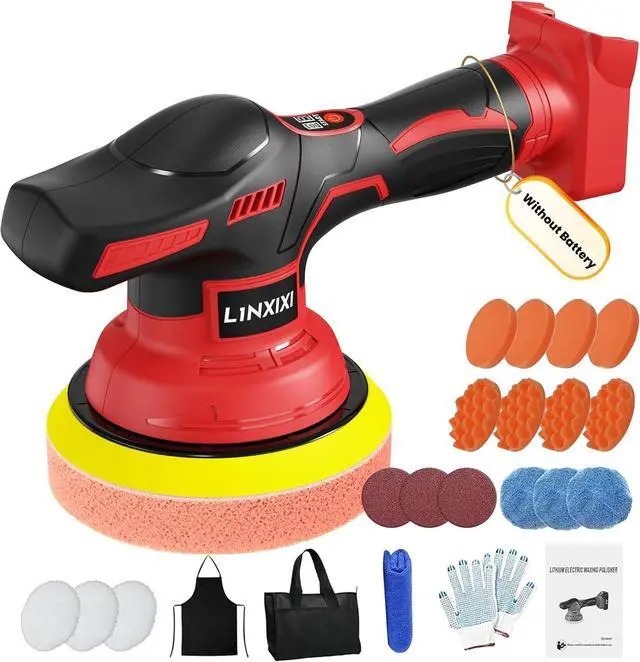 What You Will Get: The car buffers and polishers kit includes 1 x cordless polisher (battery not included), 3 x flat sponge pads, 3 x waffle sponge pads, 2 x wool pads, 8 x polishing bonnets, 6 x sandpapers, 1 x carry storage bag, 1 x microfiber cleaning cloth, 1 x apron and non-slip gloves. If you have any questions or doubts please feel free to contact us directly our service team will reply within next 24 hours.