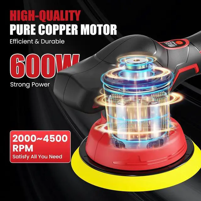 Humanized Design: buffer polisher comes with a packing bag that holds the random orbital polisher with all accessories for easy storage. It can also protect the orbital buffer from dust to prolong its service life.