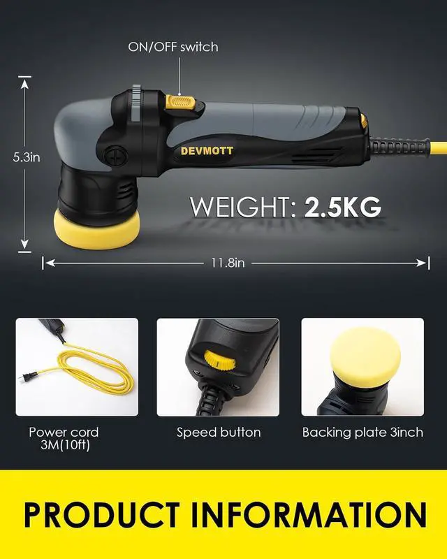 6-SPEED CONTROL6 Variable speed from 2000 to 6500 OPM, this mini buffer polisher can finish gentle waxing, deep polishing, or heavy scratch removal. polisher wiledly used on cars, motorcycles, boat or furniture
