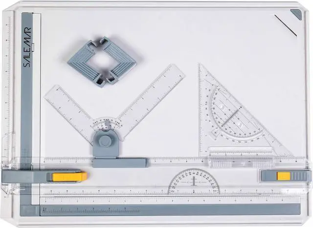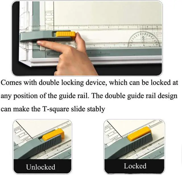 The L-system straightedge design allows drawing along the top edge of the straight edge right down to the bottom of the sheet, with full accuracy and stability. The T-square straightedge slides up and down on a plastic runner, and maintains a nice 90°angle and can be locked into position on both sides of the board so that it doesn't move at all when you want it stable. With 12cm rotating ruler and 12cm triangle with angle attachment slide in a groove on the T-square, making it very easy to move