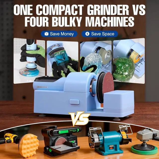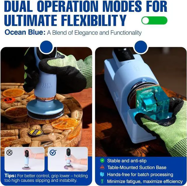 Wide Application Range: sander and polisher excels at sanding and polishing resin artworks like spherical resin pieces, 3D ornaments, resin jewelry, coasters, resin blocks, keychains, pyramids, and dice. Beyond resin, this grinding and polishing machine handles jewelry repair, metal polishing/rust removal, knife sharpening, paint touch-ups, debris removal, and surface polishingmaking it a comprehensive toolset for diverse projects.