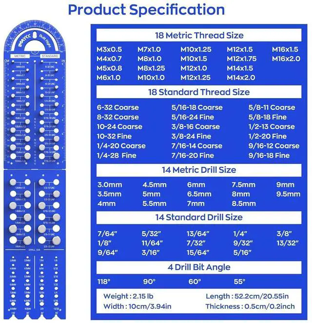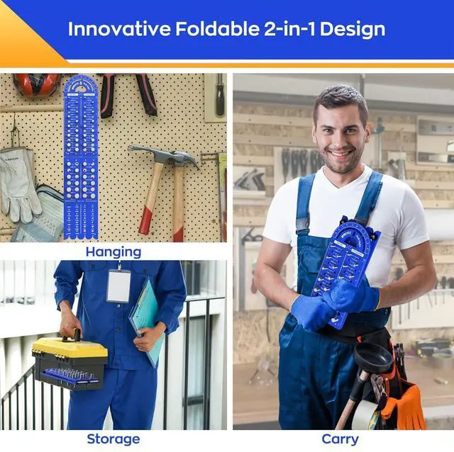 Dual-Function Measuring: Embedded 18cm/7" dual-scale ruler + 180° protractor for measuring bolt protrusion depth and precise angle cuts in woodworking or metal fabrication. Beyond basic thread checks. Designed for woodworking, metalworking, and home improvement tasks, also as present for men and women