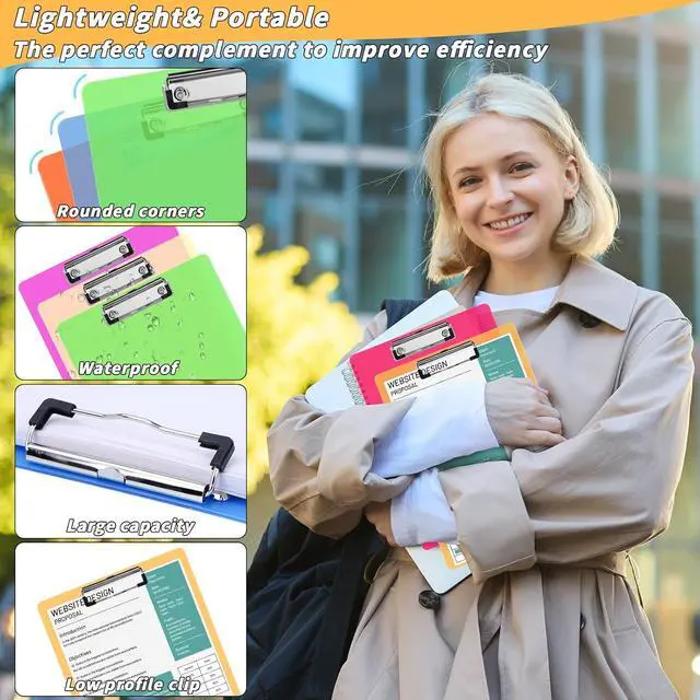 [Widely Used]: The letter-sized clipboard folder can easily clip various documents, drawing papers, photos, invoices, worksheets, reports, laboratory data, construction etc., which is very suitable for classrooms, schools, waiting rooms, nurses, sports coaches, home use, teachers, inspectors, meetings, restaurants, etc. This colorful transparent clipboard is also very suitable for kids to learn coloring, student and group projects, outdoor learning, etc. Keep your work life in order!