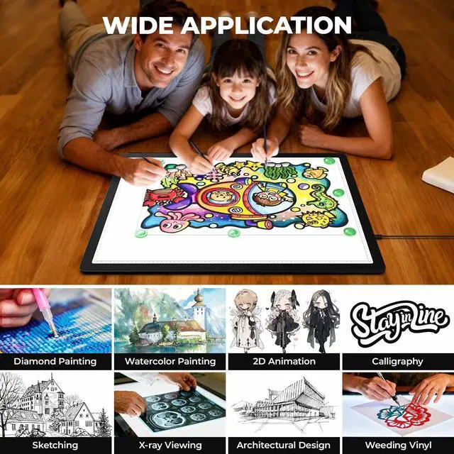Multiple Use-- Tracing light box is perfect for tracing, diamond painting, sewing projects, sketching, stencil printing, 2D animation, calligraphy, embossing, tattoo transfers, stained glass, quilting, drawing, watercolor and other scenes, Providing you a best gift for Christmas, birthdays or other holidays.