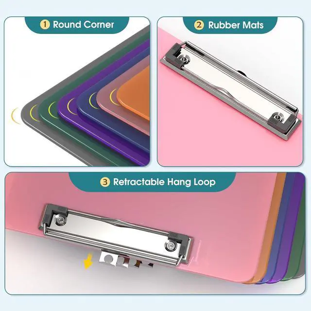 • Dimension Lightweight & Portable: Each clipboard measures 12.4 x 8.8 x 0.1 in (315 x 225 x 25 mm). Suitable for 8.5X11 size paper. Carrying and fitting easily in a backpack