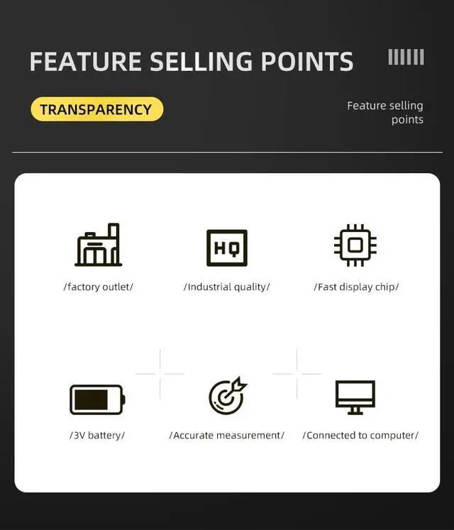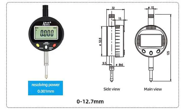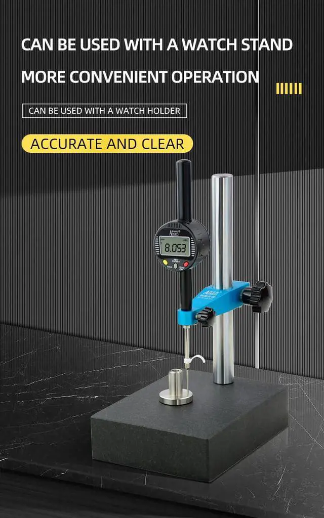 {Industrial grade quality}: The digital dial indicator is made of space aluminum material, which has excellent wear and impact resistance, waterproof and dustproof design, ensuring stable operation of the digital dial indicator in various harsh environments. {Usage scenario}: The digital micrometer has high accuracy and a wide range of applications, playing an important role in manufacturing, scientific research, industrial maintenance and other fields. Ensure product quality and improve efficiency.