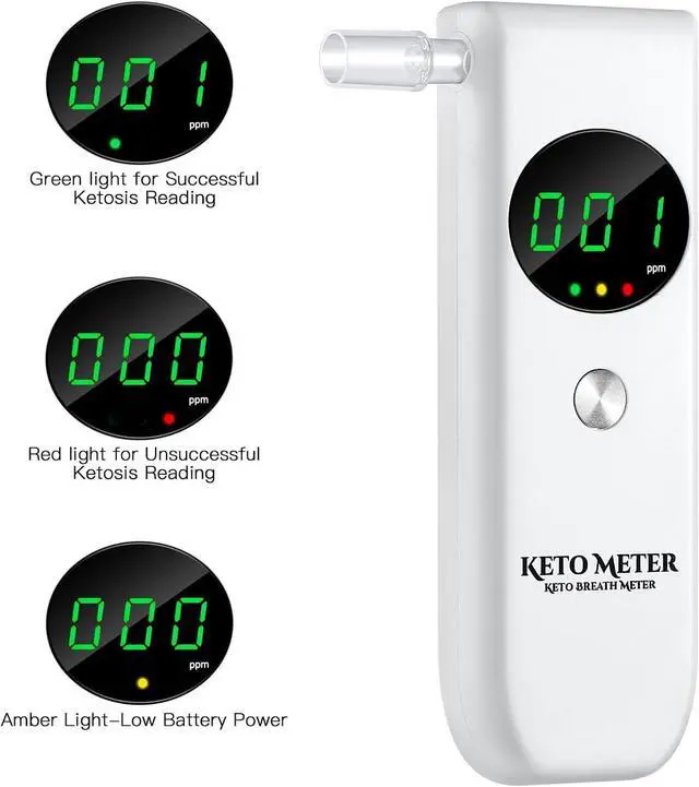 Ketosis breath tester measures 6 levels of ketones up to 99 PPM ( 0.0 -99), using a PPM (Part Per Million) measurement. Ketone breath meter with 3