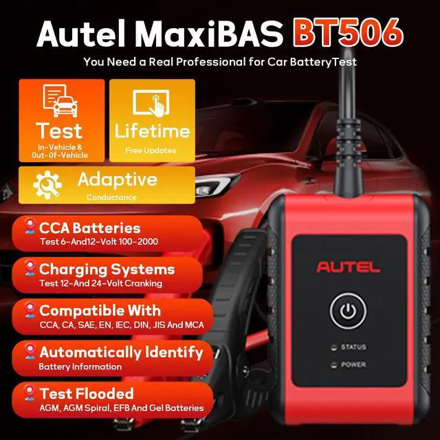 IN-VEHICLE & OUT-OF-VEHICLE TESTS MaxiBAS BT506 battery load test tool supports both In-Vehicle & Out-Of-Vehicle Tests. In In-Vehicle Test, you can perform Battery, Starter & Generator Tests. You can know cranking time & voltage so to tell if the Cranking is working normally. You can also check if the generator provides sufficient power to the vehicle electrical system and how the battery holds the charge. BT506 can also test on the battery out of the car for health check.