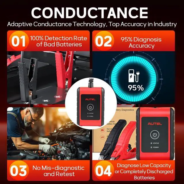 Identify Low Capacity & Abnormal Cells QuicklyBT506 adaptive conductance technology is OTT automotive battery test a visual product, different from general battery test tools, the misdiagnosis rate is high, the diagnosis is inaccurate and BT506 allows you to test in the case of not running out of battery, the function can quickly identify the battery cold start capability, low capacity battery and discharge the battery testing, improve the rates of detection of abnormal cells, To minimize miscarriage of justice. Reduce the number of retests