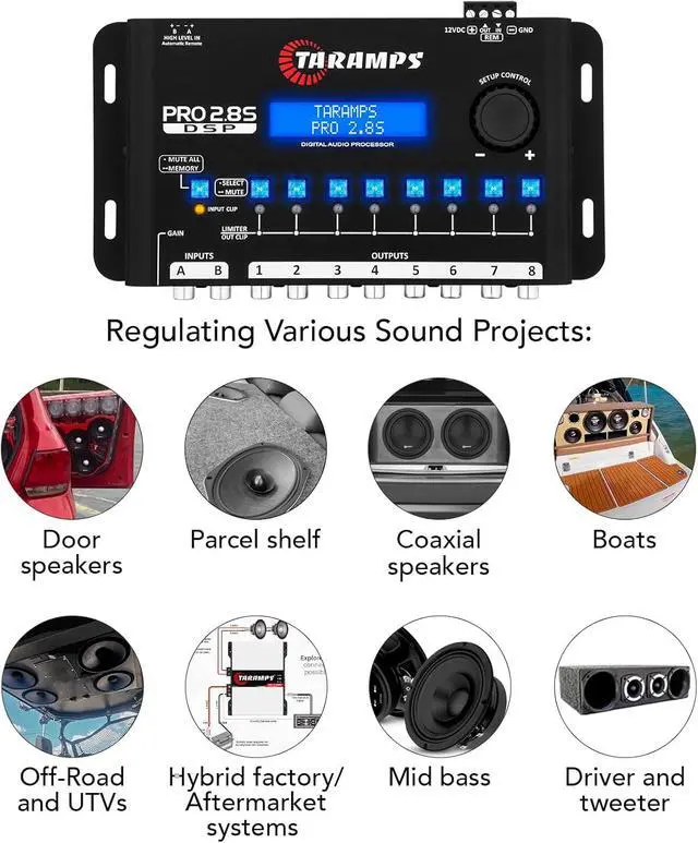 Output: Set the level for each output way. Allow apply up to +15dB gain or -45dB attenuation.