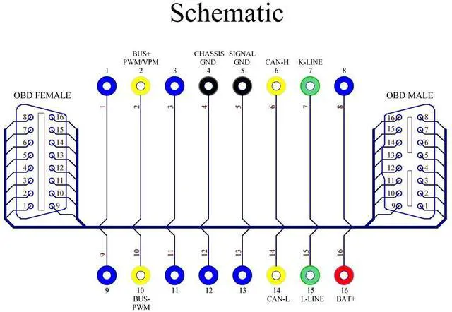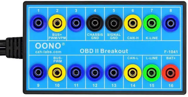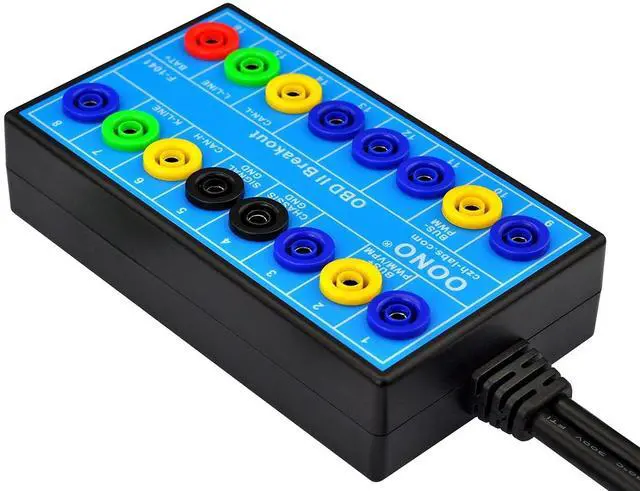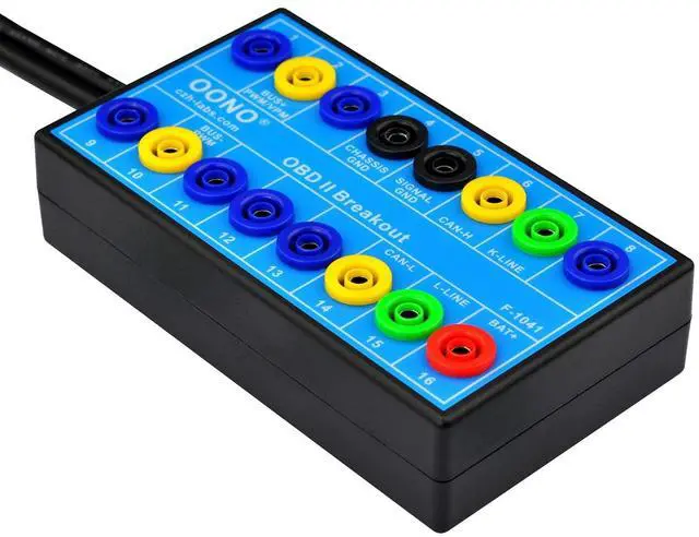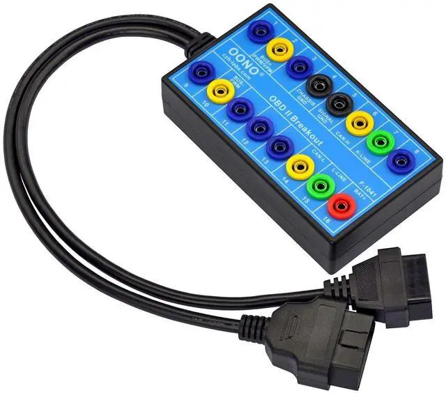 1, The OBD-II breakout box with male and female header connectors, so that this breakout box can be placed between the vehicle and the diagnosis tool. Very handy if you want to measure CAN bus signals.