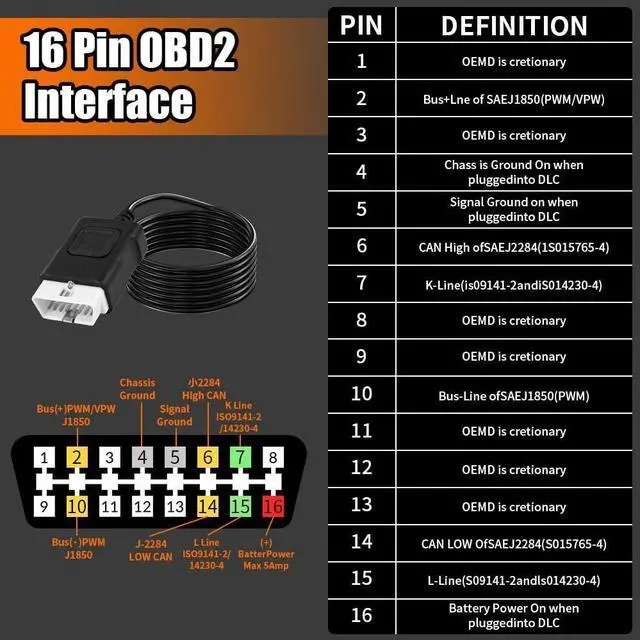 Support multiple types: can detect PWM (J1850) VPW (J1850) ISO 9141-2, DIS/ISO 14230-4 (12V car and 24V diesel) CAN bus (J-2284) (SAEJ1939) power signal and ground signal