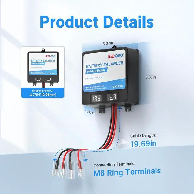 Dual automatic protection functions: battery balancer is equipped with reverse connection protection and high temperature protection functions. Powerful reverse polarity protection can prevent product damage caused by accidental mixing of positive and negative poles (please do not reverse polarity for a long time). The high temperature protection function can cut off high temperature phenomena caused by abnormal situations.