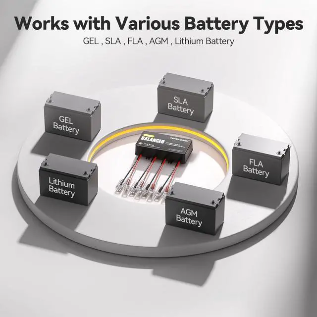 One Balancer for All Your BatteriesDesigned to work with a vast range of batteries, including LiFePO4, Lithium-ion, and Lead-Acid (GEL, SLA, FLA) types. It's the hassle-free choice for all the batteries that have a rated voltage within 3-20V, making it a universal solution for diverse needs.