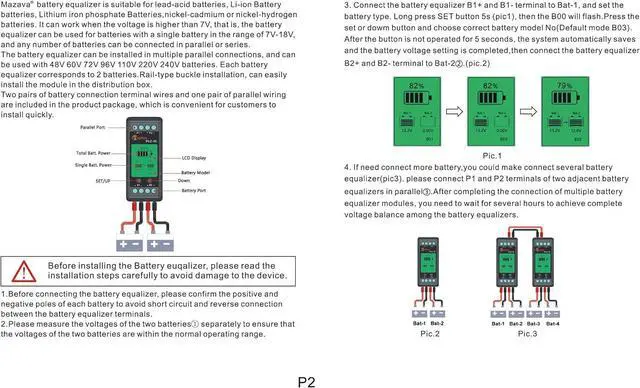 Battery Equalizer LCD Display Battery Voltage Balancer Battery Bank Extend Battery Life Support Gel Flood AGM Lithium Battery Balancer12V 24V 48V 96V