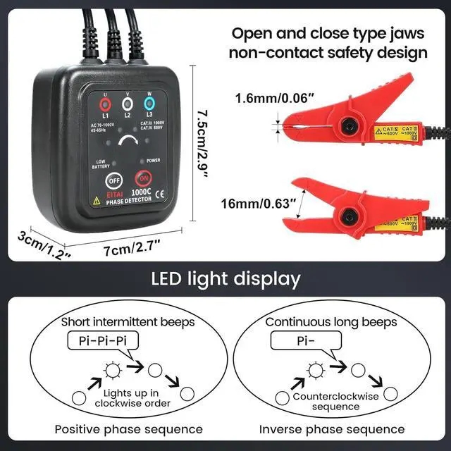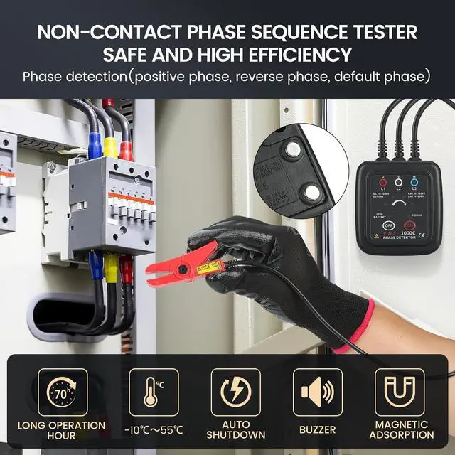 Easy operationThe phase rotation meter equipped with a magnet on the phase detector meters bottom plate, it can be easily attached to the metal case of the equipment during testing for convenient operation. Real-time data is presented via both voice and display for clear and immediate understanding.