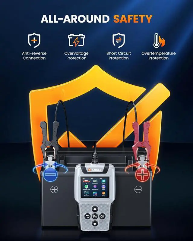 Built-in Safety ProtectionsDesigned with reverse polarity, short circuit, overcurrent, and overvoltage protection, plus durable ABS housing and insulated copper clamps, the BA101 PLUS ensures safe operation in any environment. You can test with confidence, knowing your vehicle and personal safety are protected