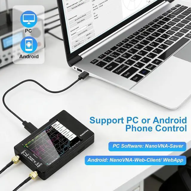 [SUPPORT ANDROID PHONE & PC SOFTSARE CONTROL] Designed a practical and simple control application on PC, you can download touchstone (SNP) files for radio design and simulation software. There is a PC interface that adds functionality and lets you work interactively on a bigger screen. Supports time domain analysis function (TDR). Compatible with most Android mobile phones, convenient for connecting to mobile phones. Support Windows Computer Control