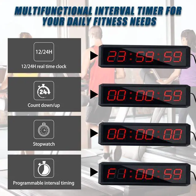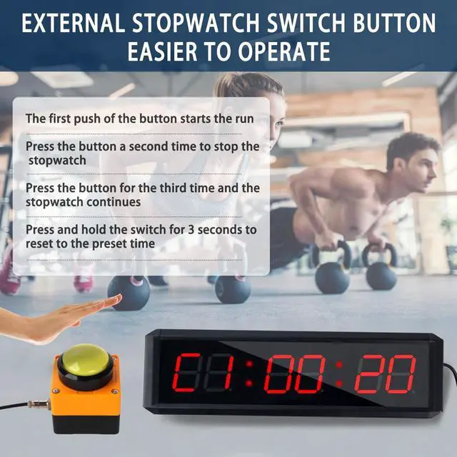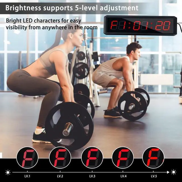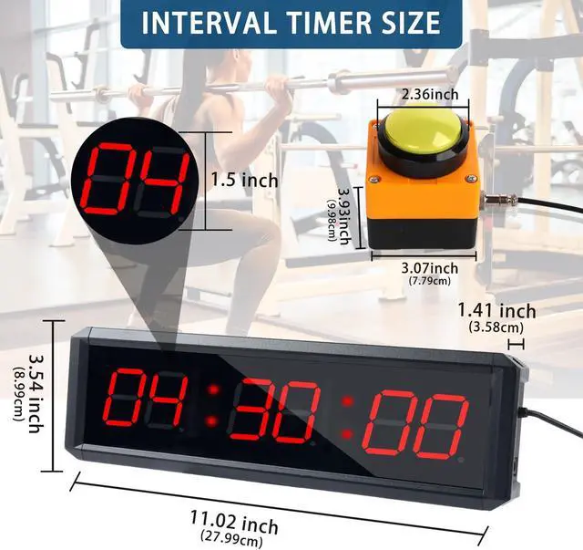 Brightness adjustment and buzzer: The fitness timer is a 1.5 -inch high character ultra bright LED screen. The shell is made of aluminum alloy, which is very lightweight and durable. The dimensions are 11 (width) x 3.55 (height) x 1.4 (depth). The digital brightness can be adjusted by 5 levels, and the buzzer reminds you to start or end the device sound (Pressing the M8 key once will make the buzzer sound once), indicating that the sound has been turned off. Pressing the M8 key again will make the buzzer sound three times, indicating that the buzzer sound has been turned on)