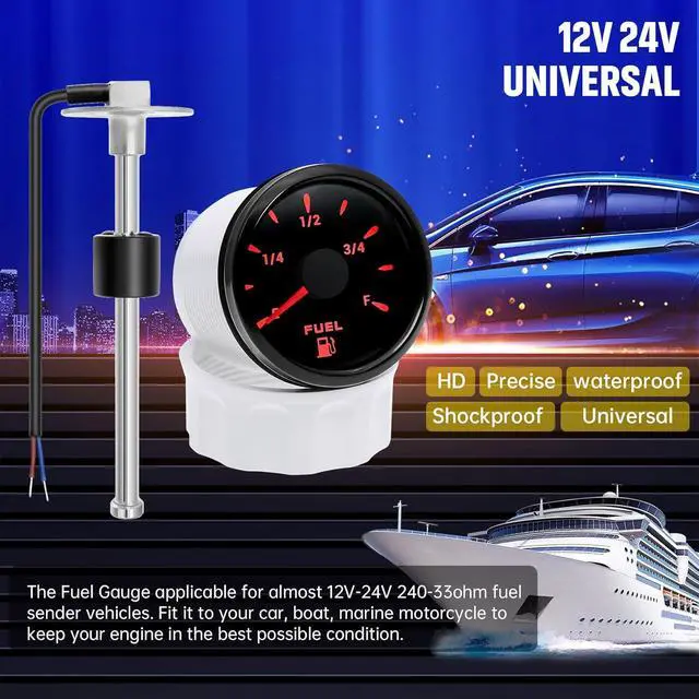 • [American Standard Output]: The fuel gauge is combined with the fuel sending unit to make it easier to work on the vehicle and avoid signal mismatches. The Fule/Water level sensor suitable to American standard output 240-33 ohms (240 ohms at empty, 33 ohms at full). Length range of fuel tank sender to choose: 5 inch-18inch