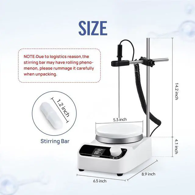 Complete Ready-to-Use Kit--This reliable hotplate stirrer comes with a standard 1.2" stirring bar. Its stable design ensures smooth performance, providing an all-in-one solution for your daily mixing and heating needs right out of the box.