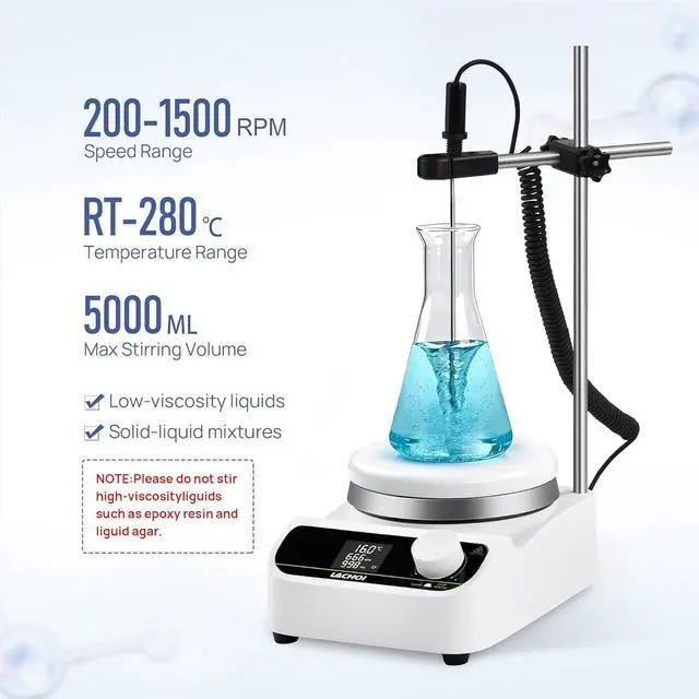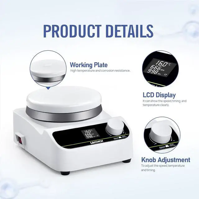 Easy Digital Control--Operation is simple thanks to the clear LCD screen. Easily set, monitor, and adjust speed, temperature, and time for your magnetic stir plate, making precise control intuitive for any user in the lab.