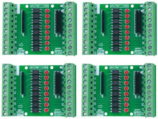 It is a DC 3.3V 5V 8-Channel Optocoupler Isolation Module. It can detect 8-Channel DC input power sources and output DC voltage according to the detection results. The output results can be applied to PLC system and other control equipment. It can detect whether there is input power. The output status will change when the input power is detected.